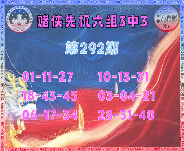 292期:『赌侠先机』 🎆六组3中3🎆